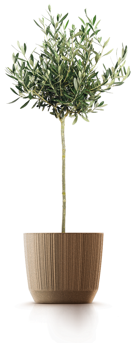 Poziome linie formowane na doniczce sprawiają, że wygląda ona nietuzinkowo.