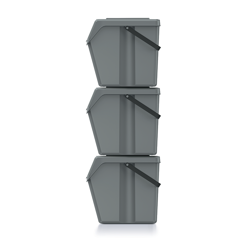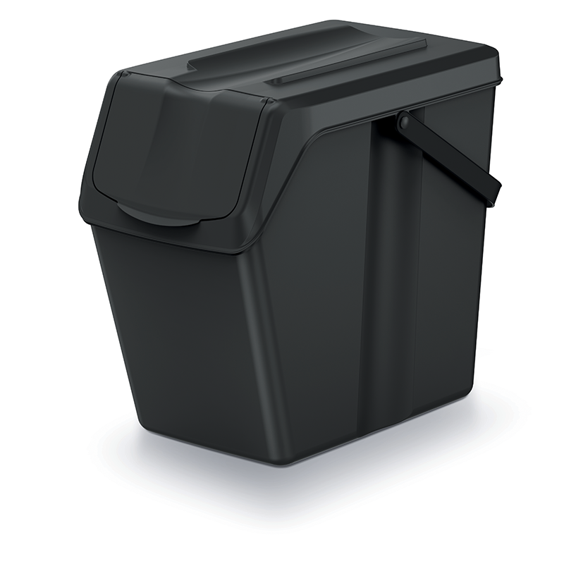 Dobrze zaprojektowany, estetycznie wykonany i pojemny (25L), o konstrukcji stworzonej specjalnie z myślą o ograniczonej przestrzeni, ułatwiającej zestawienie segmentów w stabilne szeregi lub słupki.Kolorowe uchylne klapki w pokrywach wskazują frakcje sortowanych nieczystości.